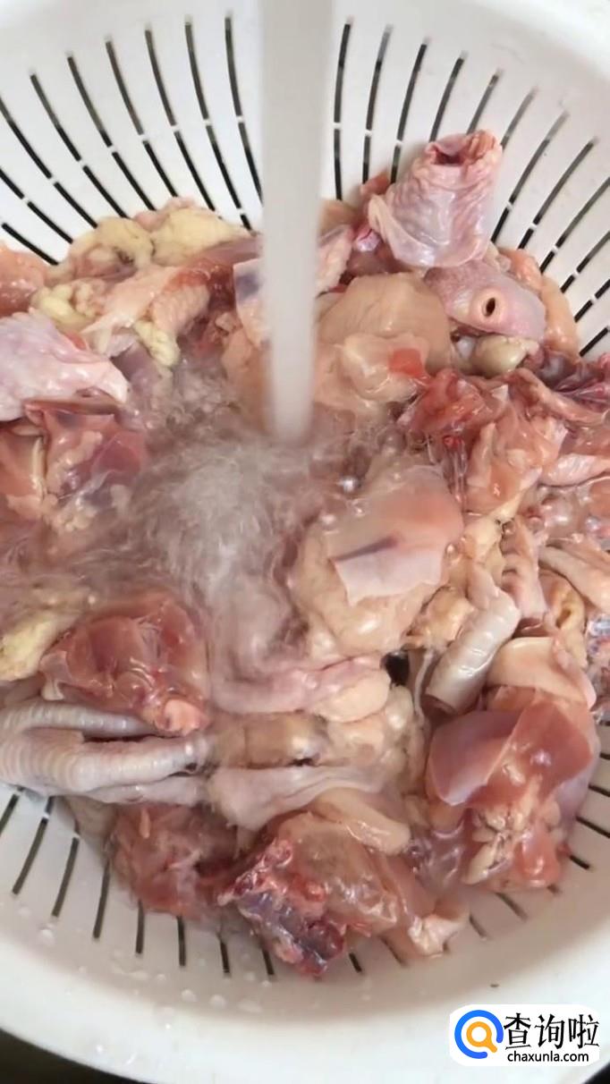 然后把切好的鸡肉用白开水冲洗干净,如下图所示。