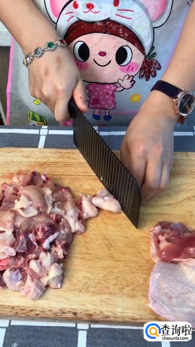 首先将鸡肉切成小块,如下图所示。