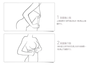 1、用尺子测量胸围、下胸围。乳房下垂者应把乳房推高至正常位置后测量。