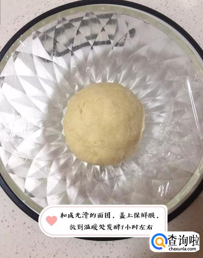 接着揉成光滑的面团,盖上保鲜膜醒发一个小时。如下图所示。