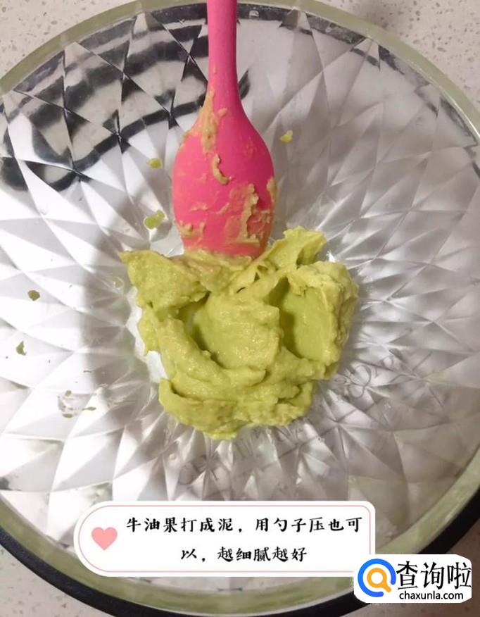 然后将牛油果打成泥,如下图所示。小贴士如果大家家中没有料理机,可以用勺子把它压碎也是可以的。