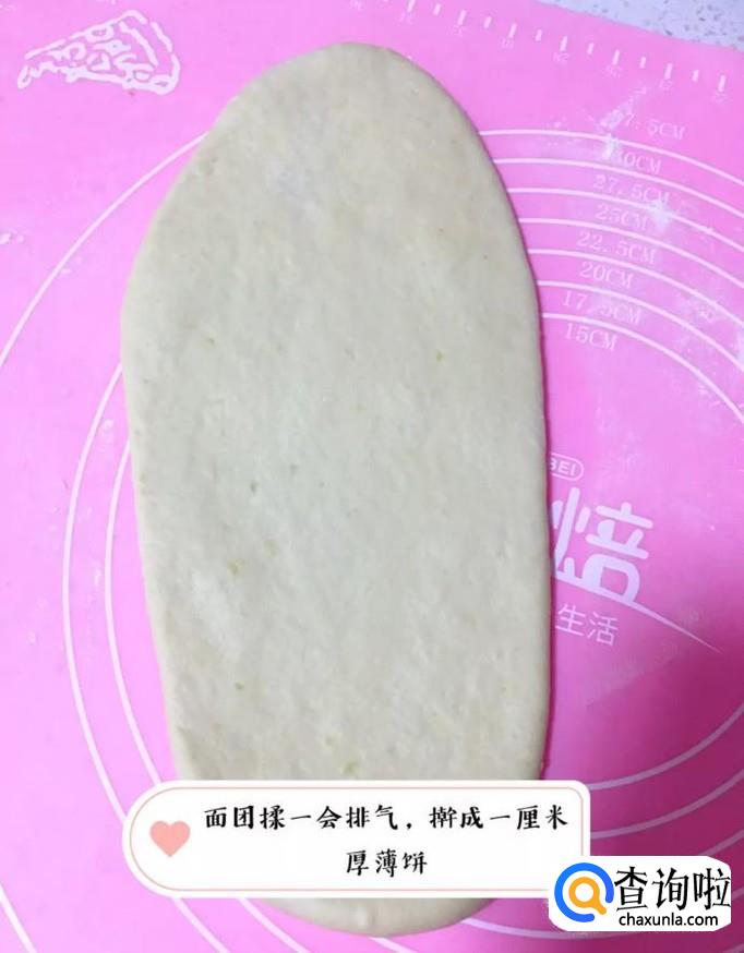 然后把面团揉一揉,用擀面杖擀成薄饼,如下图所示。