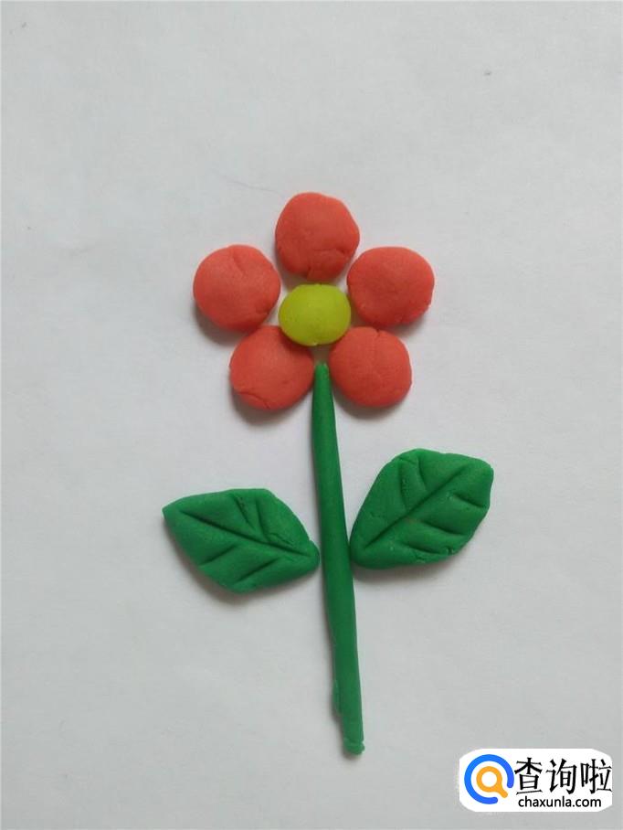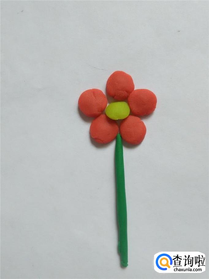 再用绿色搓一个长条,粘在花朵下面,当作花茎。
