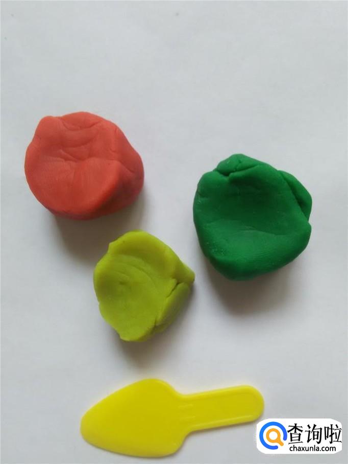 准备红黄绿三种颜色的粘土和小刀。