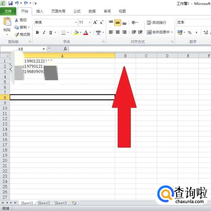 我们首先把鼠标指针移动到身份证号码右边的B列“B1”单元格。