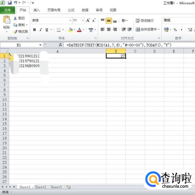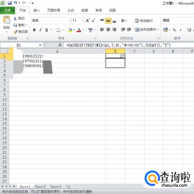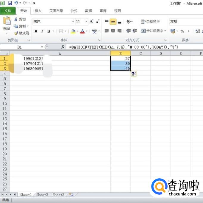 最后A列所有身份证号码的年龄都提取出来了。