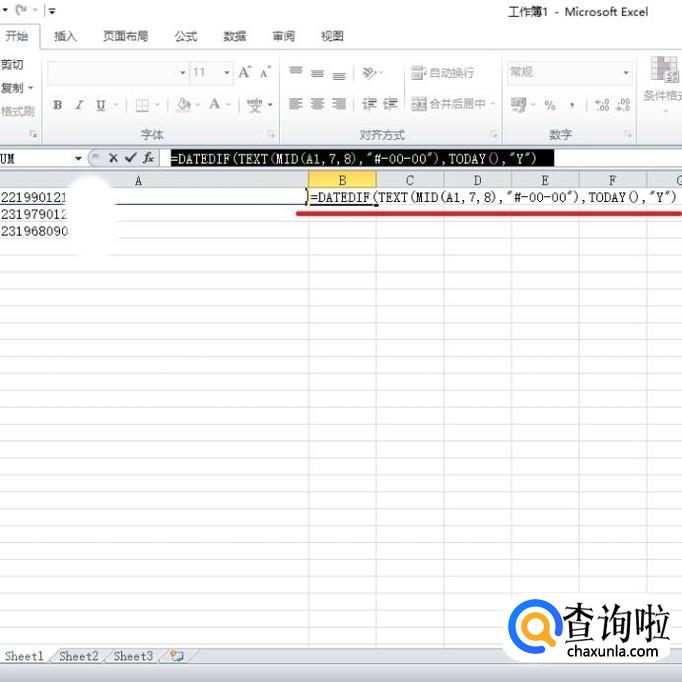 然后输入公式“=DATEDIF(TEXT(MID(A1,7,8),"#-00-00"),TODAY(),"Y")”。