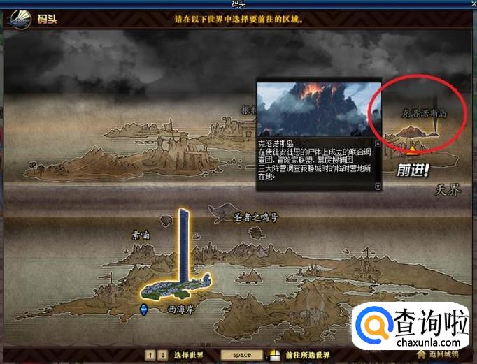 进入游戏后,前往西海岸港口,使用码头的区域传送阵前往“克洛诺斯岛”地区。