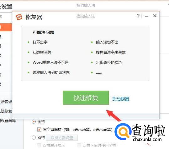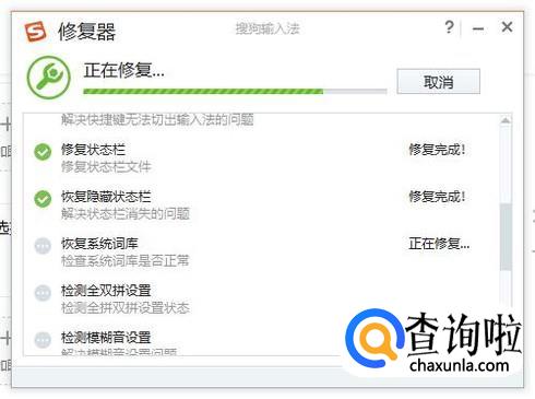 进入下一页面之后,系统就会自动修复输入法,如图所示。
