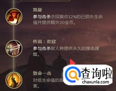 剩下的选择凯旋,欢欢以及致命一击,这个几个天赋增加武器的伤害以及武器的攻击速度。