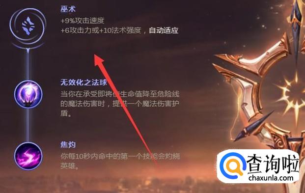在副系的选择上武器可以选择巫术的无效化法球,防止被对面ap给秒了,另外一个选择焦灼,这样在对线的时候增加伤害、