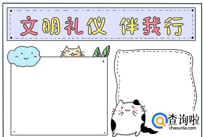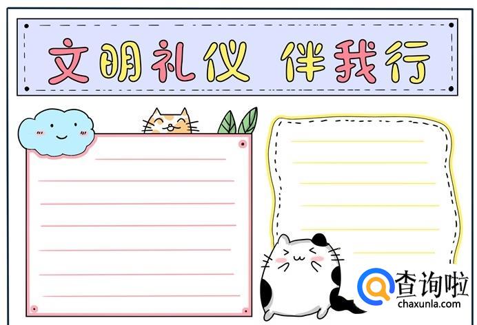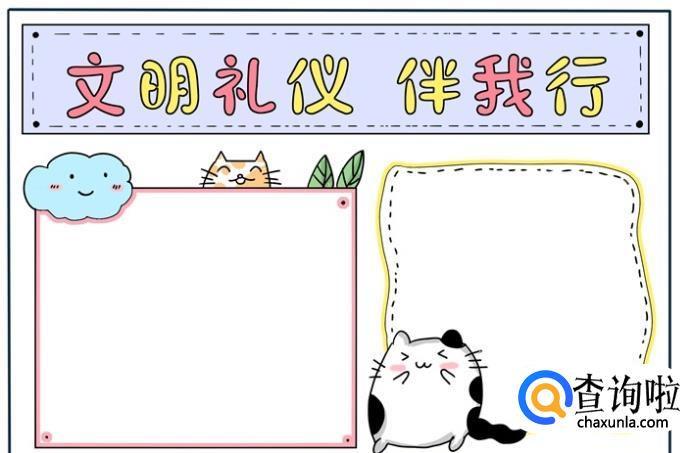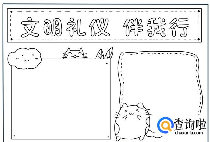 最后在空白处画上边框相应颜色的横线,这样,文明礼仪手抄报教程就制作完成了。
