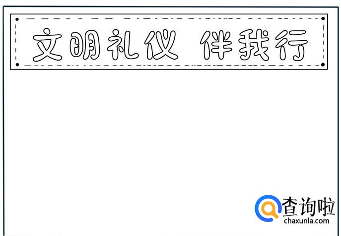 先写上“文明礼仪伴我行”几个字,用矩形边框包围着,里面再画上虚线。