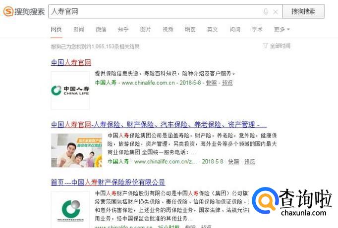 在搜狗搜索栏中输入中国太保在百度搜索结果列表中选择中国太保官网点击打开