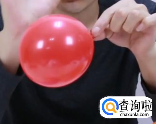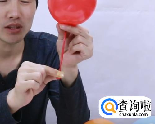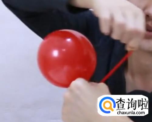 此时的结还不牢靠,松开气球嘴会发生漏气,所以还需要顶住打结的地方,再次缓慢拉动气球嘴直到结打紧为止。