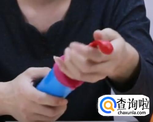 拔下之后不要松开气球嘴,用一只手捏住气球嘴,另一只手将其拉长5-7cm。