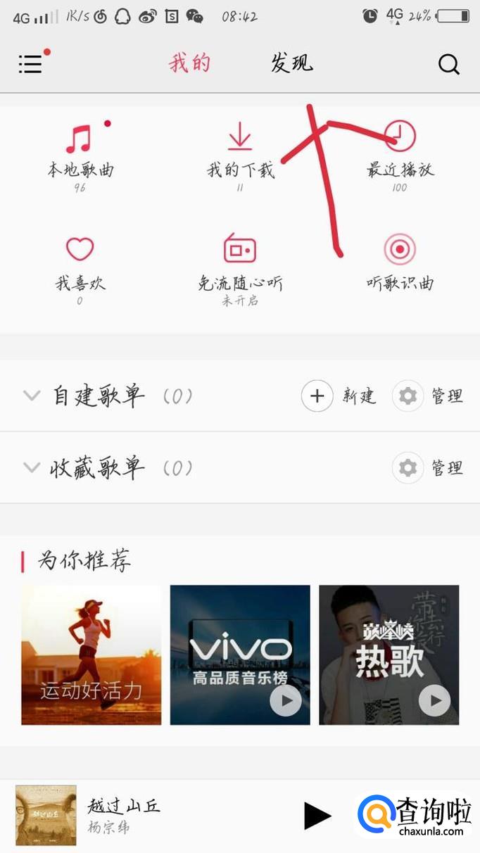 你可以在精选,歌单或者排行榜里找到自己喜欢的歌,也可以直接搜索自己喜欢的歌。如图1箭头所示。选择好自己喜欢的歌后点击下载。