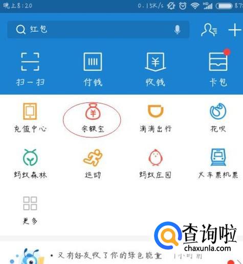进入支付宝首页后,找到余额宝并点击进入