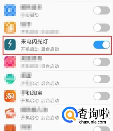 在权限管理页面找到“来电闪光灯”,将其设置为“自开启”并打开一些其它权限即可设置完成,如图所示。