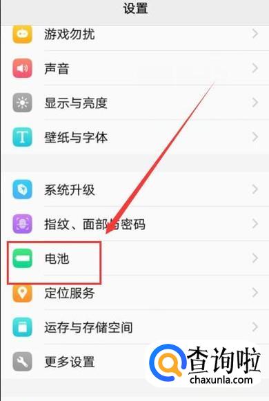 打开手机设置,找到电池选项,点击并进入,如图所示。