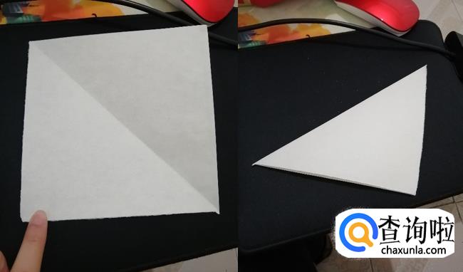 准备一张纸,裁剪成正方形,再将其对折为一个三角形。
