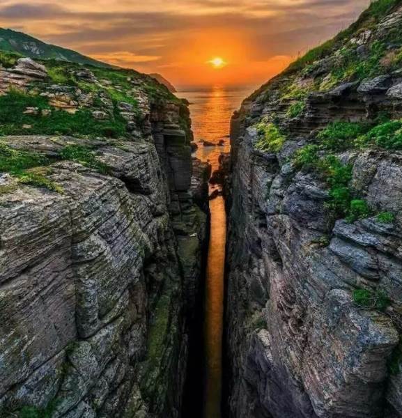在山峰与低矮的山谷之间只有一点小空隙,光线通过这层间隙之后会显示出一条线的天空的,所以看起来天空只有一条线,这样的奇特的地貌被称为一线天。
