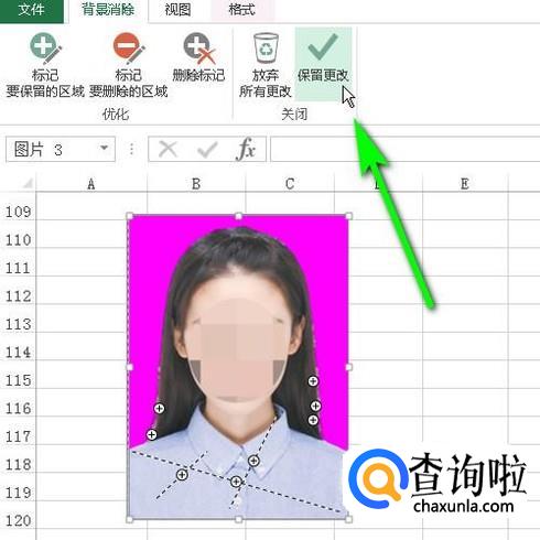 再点击:保留更改;那么,白色背景即删除。
