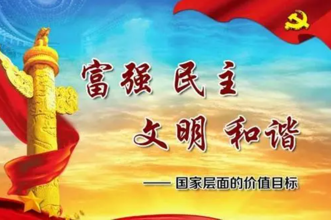 “富强、民主、文明、和谐”,是我国社会主义现代化国家的建设目标,也是从价值目标层面对社会主义核心价值观基本理念的凝练,在社会主义核心价值观中居于最高层次,对其他层次的价值理念具有统领作用。富强即国富民强,是社会主义现代化国家经济建设的应然状态,是中华民族梦寐以求的美好夙愿,也是国家繁荣昌盛、人民幸福安康的物质基础。民主是人类社会的美好诉求。我们追求的民主是人民民主,其实质和核心是人民当家作主。它是社会主义的生命,也是创造人民美好幸福生活的政治保障。文明是社会进步的重要标志,也是社会主义现代化国家的重要特征。