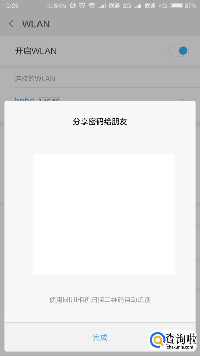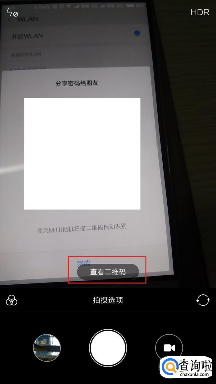 接下来,手机中会出现一个二维码,该二维码即手机所分享的无线网络密码。