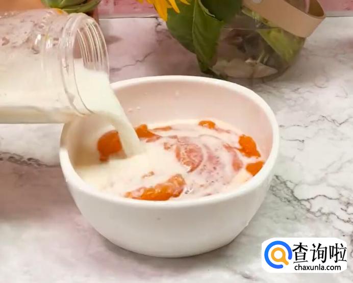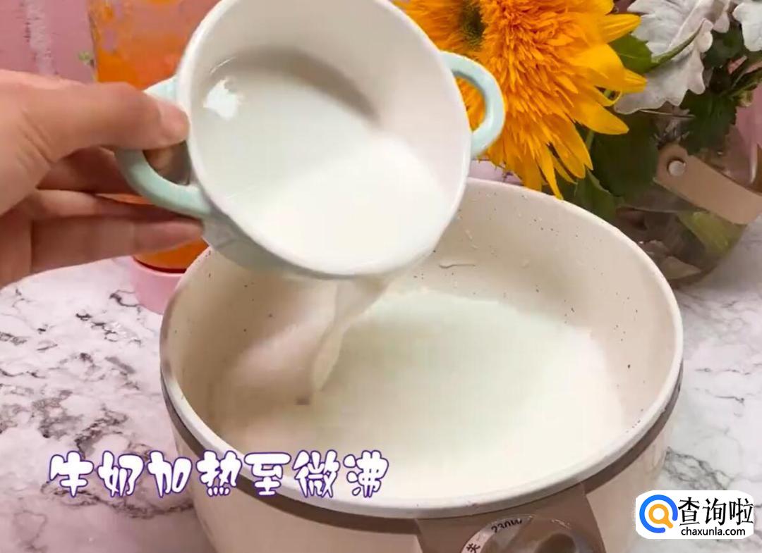 把牛奶放入锅中加热,煮至微微沸腾的状态。