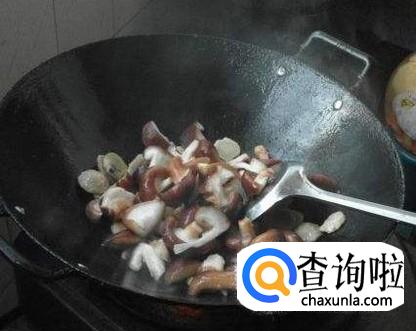 先放入香菇煸炒,因为香菇必须经过油炒后,香菇才能散发出来。