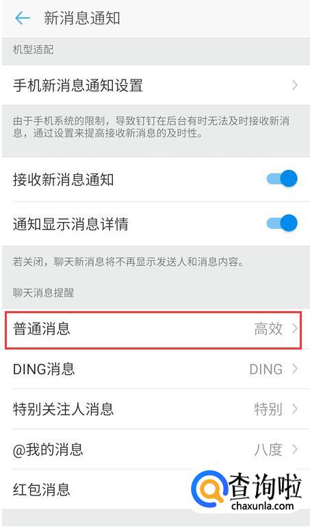 在最顶上的新消息通知设置这里,可以设置消息通知,比如是否弹窗,是否在下拉菜单提示等。