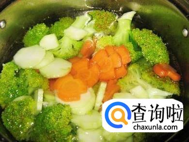 先往锅里加入适量的水,然后等待烧开以后在倒入西兰花和胡萝卜,放入少于的盐,煮大概三分钟左右捞出来然后过下冷水放在盘子里。虾仁用同样的方法煮,但是不过冷水。