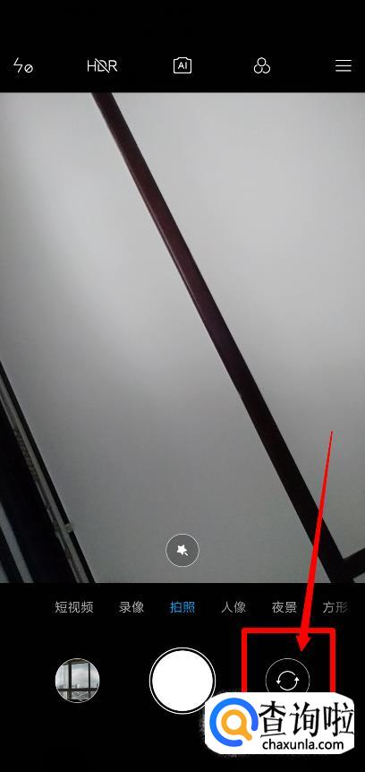 打开自带相机之后,点击右下角,换成前置摄像头。