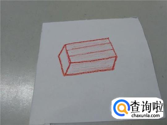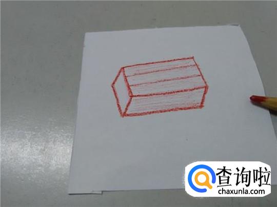 最后用红笔将上面和下面的两个平行四边形涂上红色,表示橡皮外面的纸,橡皮就画完了。