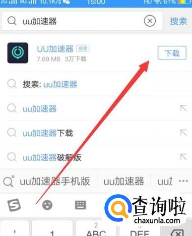 进入之后,搜索“UU加速器”将其下载安装到手机上面,如图所示。