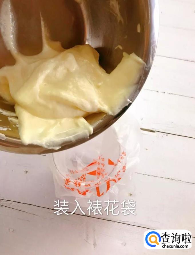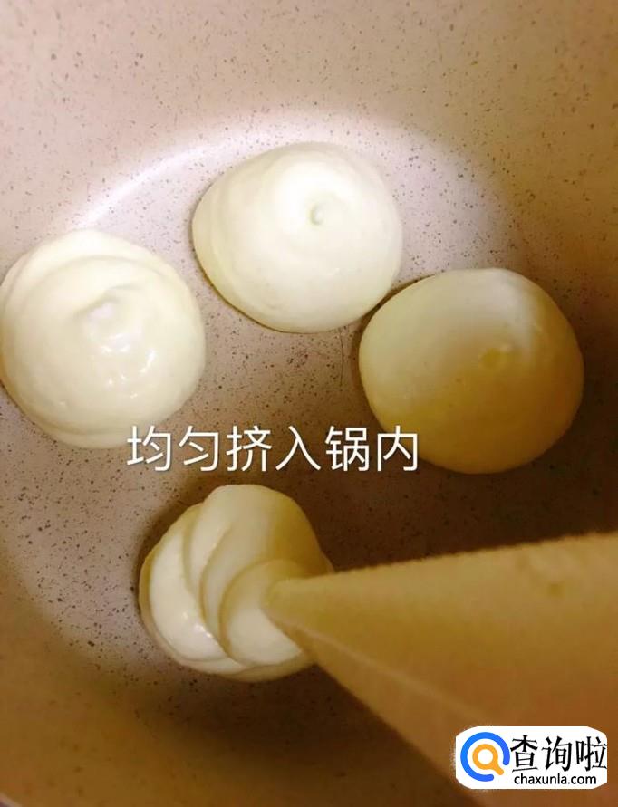 接着将面糊均匀的挤入锅内,如图所示。