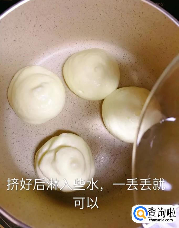 挤好面糊后浇上一些水,如图所示。