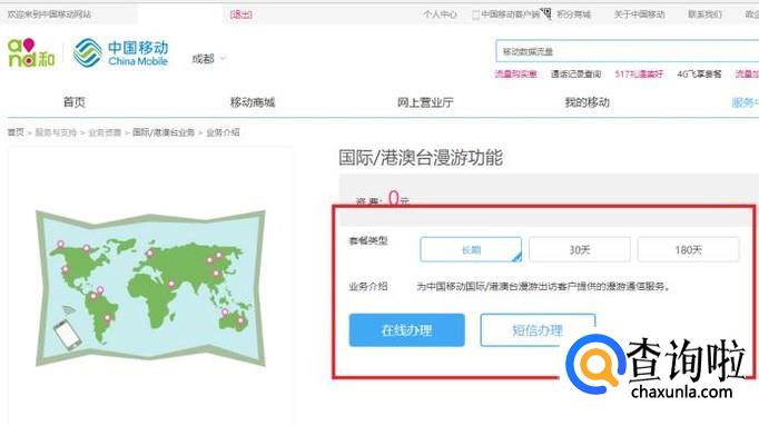 接下来根据在香港停留的时间选择套餐类型,最后点击“在线办理”即可。
