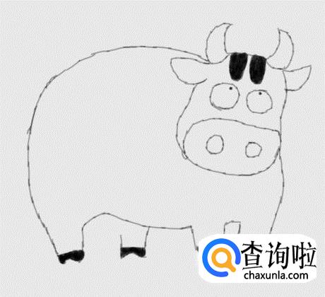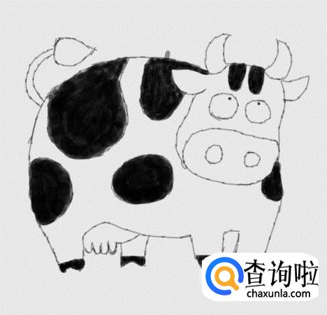 最后再在奶牛的身上画出奶牛的皮肤花纹在,这样我们的奶牛黑白画就画好了,如图所示: