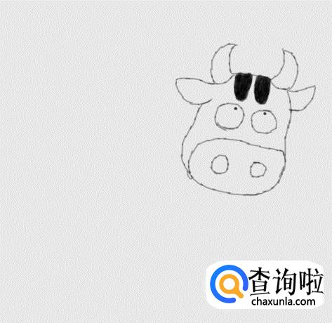 再在眼睛下面画出奶牛的鼻子及鼻孔,如图所示: