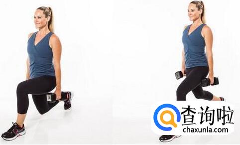 1、身体直立,双脚并拢,双手在身体两侧各握住一个哑铃,手臂自然下垂,掌心相对。全程保持目视前方。2、保持躯干正直,向前迈出一步,脚后跟先着地。然后,身体下蹲,直到膝关节呈90度夹角。你迈出腿膝关节的位置,不应该超过脚尖的位置。你的后腿应该在身体后方伸展,膝关节弯曲,但膝盖不要触及地面。然后,用迈出腿的脚后跟发力,使自己返回到起始位置。3、在箭步蹲的返回阶段,不要使上半身从腰部的位置往前俯身,你应该全程保持躯干与地面垂直。