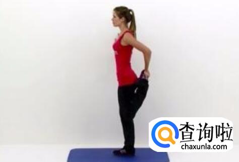 1、单脚站稳,将另一只脚往后勾起。2、同侧手轻扶脚踝处,缓慢地将小腿夹近大腿,轻触臀部。大约10秒后换脚伸展。3、过程中上半身挺直,下肢弯曲轻慢,避免膝盖太激烈伸展。