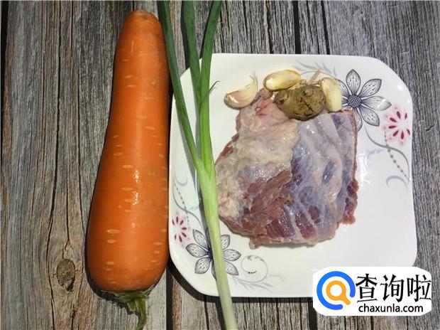 买了一块牛腩,一根红萝卜,一块老姜,一根香葱。牛腩买半肥瘦的那种,很有嚼劲。