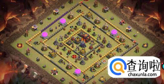阵形是很简单的回形阵,特点就是从外向内的第二层,没有任何防御建筑。