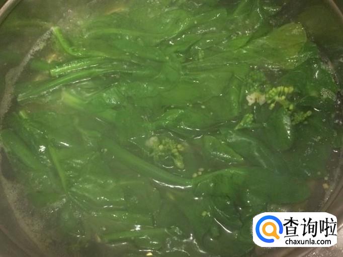 水烧开后将芥兰菜放入锅中。