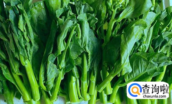 首先,我们将芥兰菜老叶去掉,并洗干净备用。