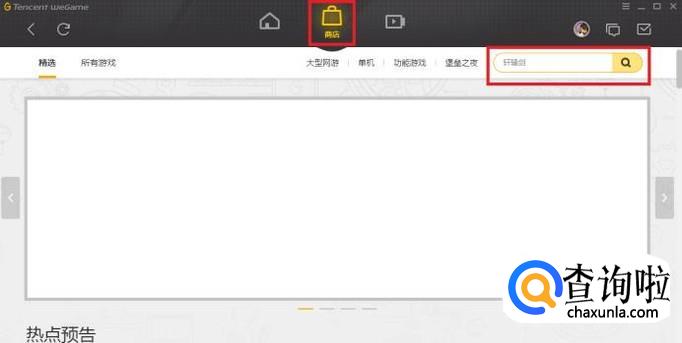 首先,打开并登录WeGame,在游戏商店的搜索栏中,输入所要下载的游戏名称,并点击后面的搜索按钮。