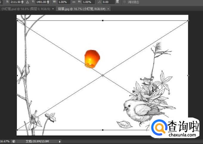如图,现在这张就是我们要扣的图了,而我们要扣的图像就是中间那个黄色的灯笼了。