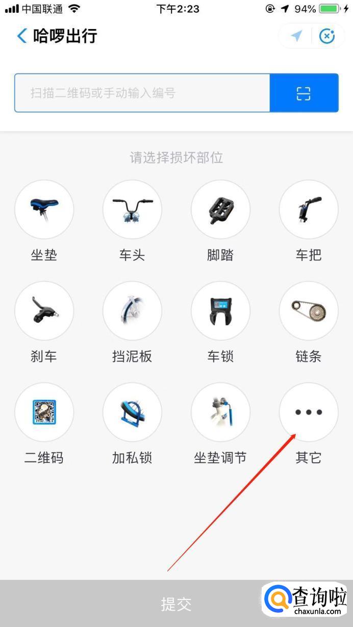 进入页面后,我们可以看到有很多选项,找到坏掉的部位,点击然后进行拍照,再点击“提交”就可以了。
